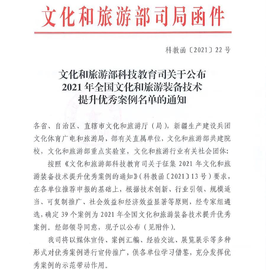 Golden Sea’s Artwork Was Listed on the “Excellent Cases of National Cultural and Tourism Equipment Technology Improvement in 2021”.