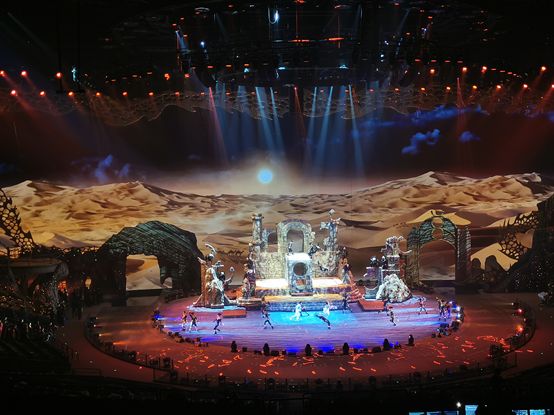 作为全新的文旅地标,长隆剧院设计体现出智能科技的前沿性和实用性。现场使用了实现实时升降的1300多台智能电脑灯具,其中浩洋电子倾力支持了1000多台灯具,以科技之光点亮这场全新的大型马戏,运用多屏幕的全景环绕技术将极致地将舞美、灯光、音响等元素重新定义整合,使剧情氛围更加紧凑。