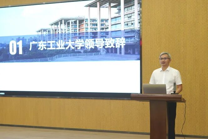 陈卓武副书记在仪式上致辞。他强调学校始终秉持“与广东崛起共成长,为广东发展作贡献”的办学理念,坚持与产业深度融合。2024软科世界大学学术排名,广工跻身全球前400强,位居内地高校第52-74名,呈现出了良好的发展态势,这离不开企业的支持。联合创新实验室的成立有助于双方资源整合,深化产学研合作,共同攀登科研高峰,助力企业高质量发展,和学校办学水平的提高。