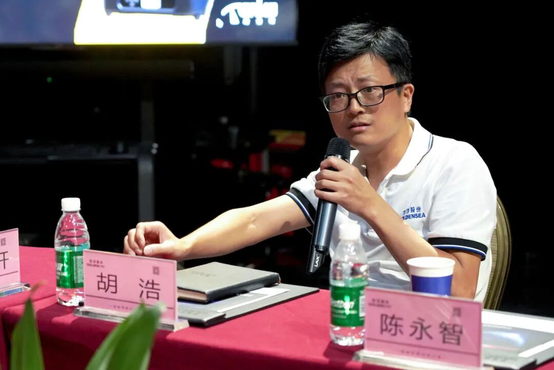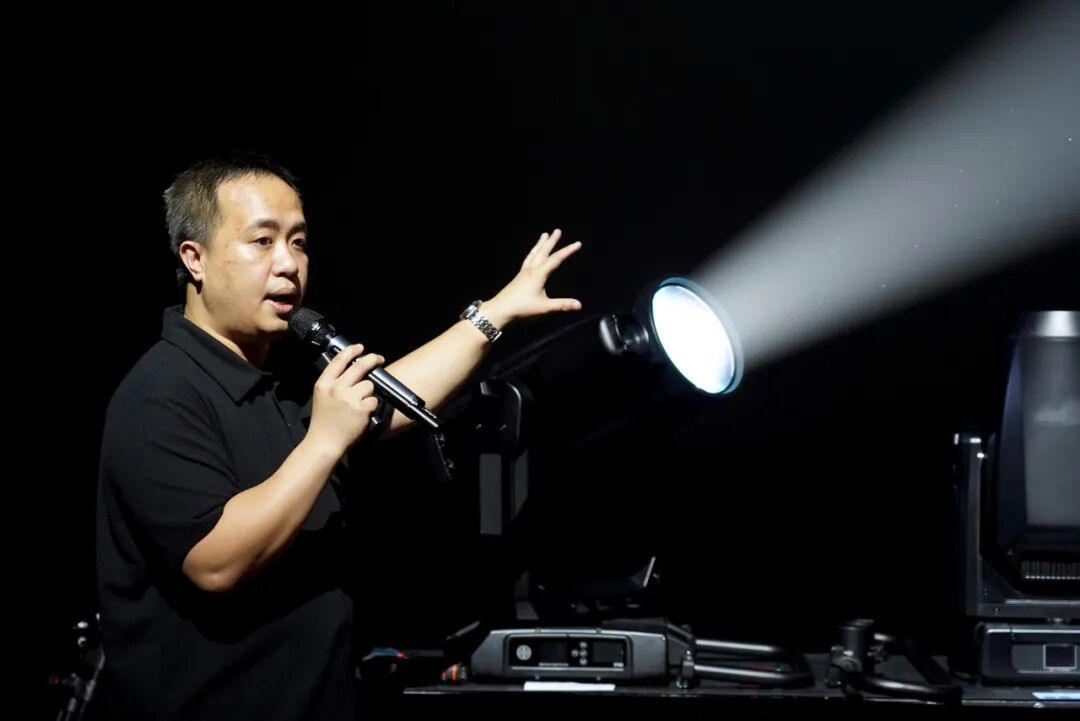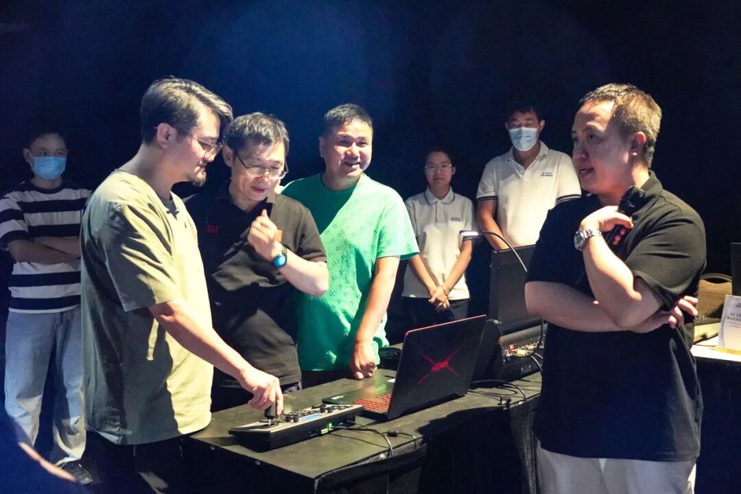 浩洋股份副总经理兼国际销售总监肖翠娟、副总经理兼研发总监黄前程、国内销售总监刘洪智、市场部总监陈永智、国际灯光博物馆执行馆长黄敏强、产品总监胡浩、项目经理车宇轩一众出席现场,与专家调研组的各位老师共同探讨多款浩洋新品的灯光技术研讨与产品性能参数测试。